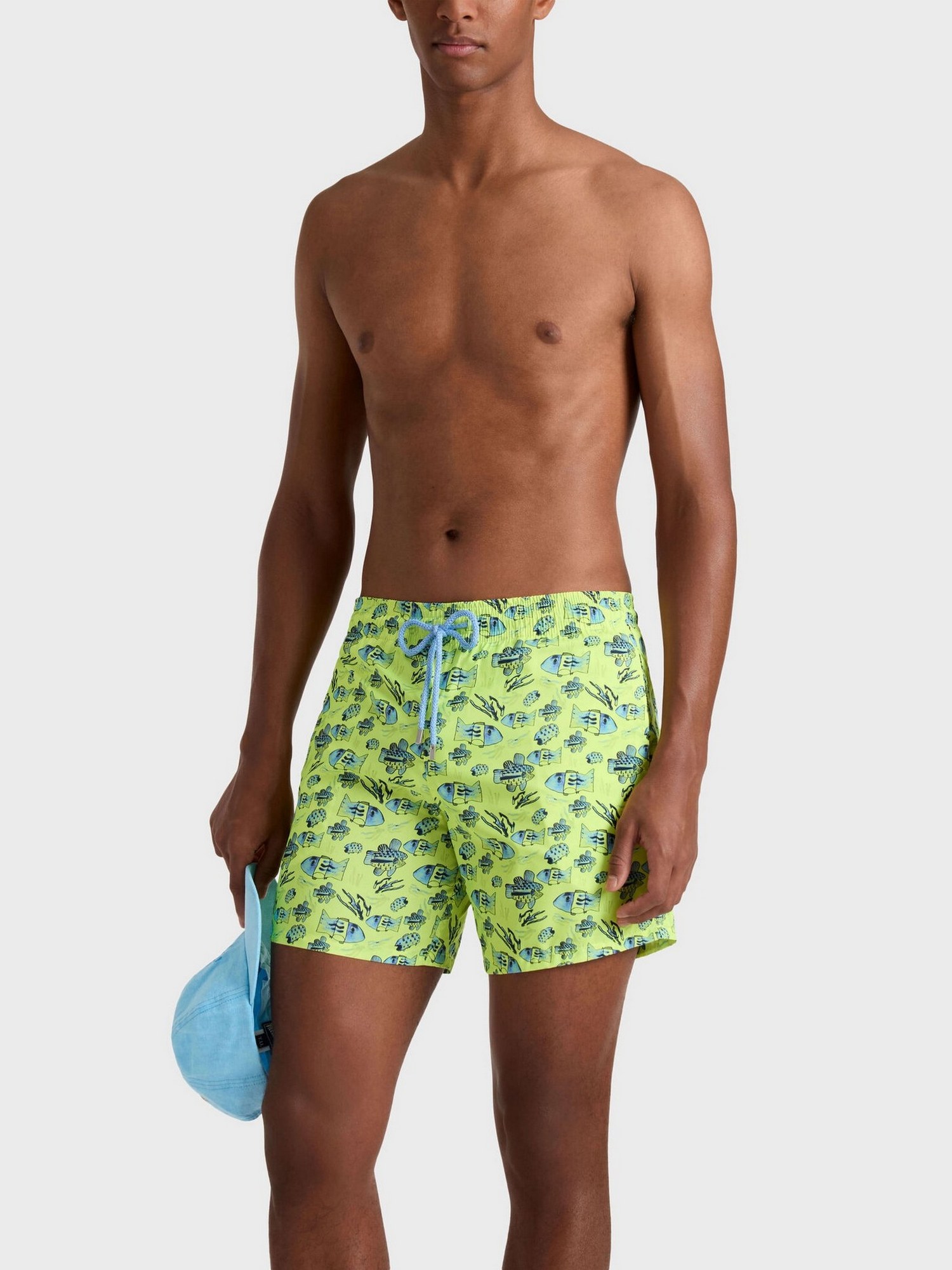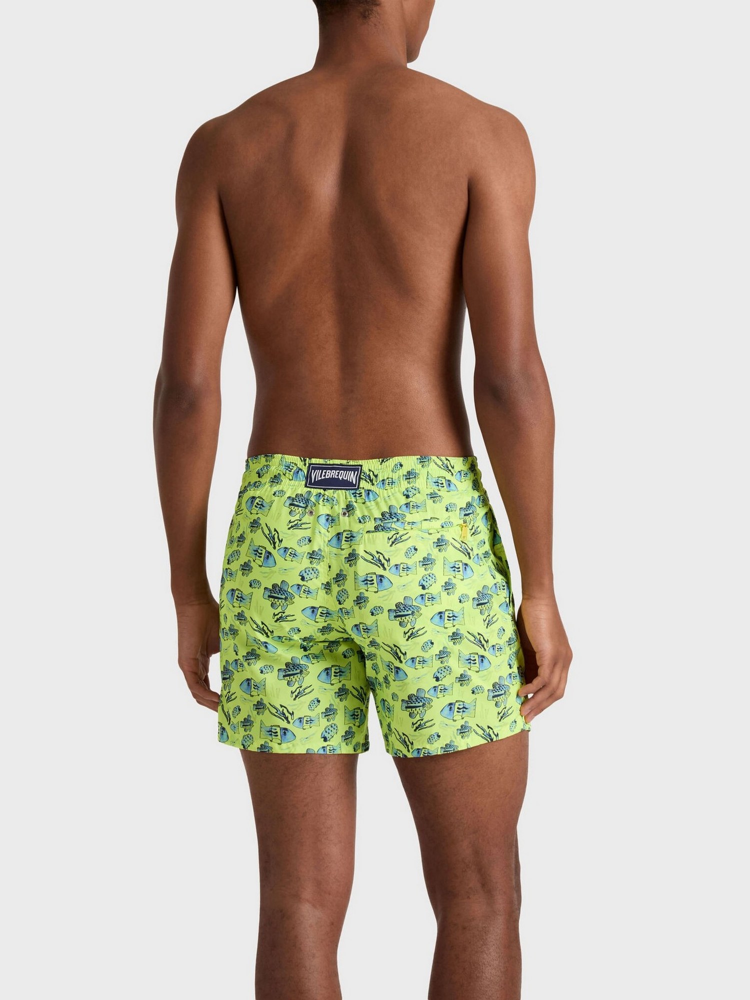 Costume da bagno ultraleggero con girovita elasticizzato con coulisse ed estremità in zamak con incisione, due tasche laterali, fodera in rete e due occhielli posteriori.