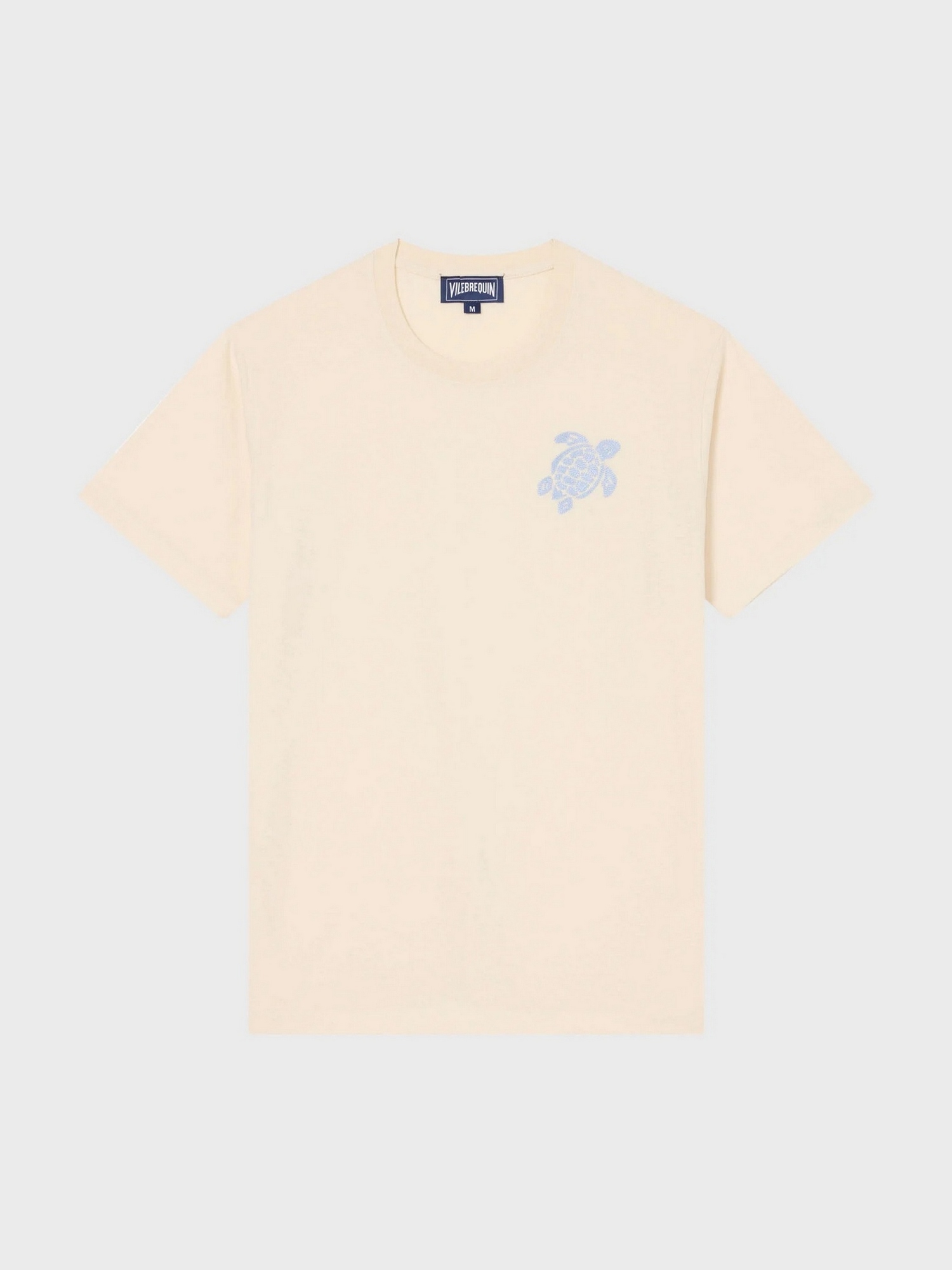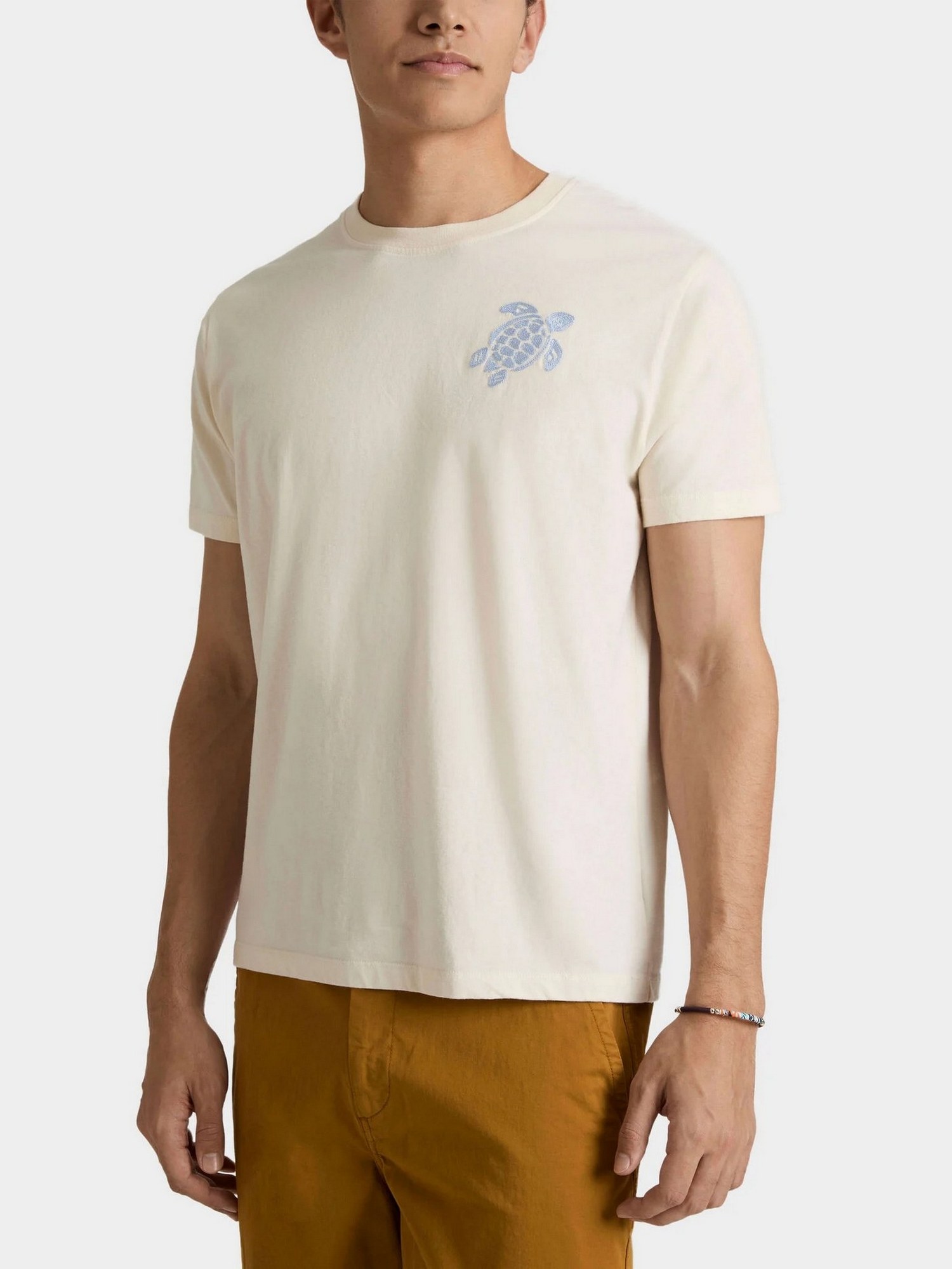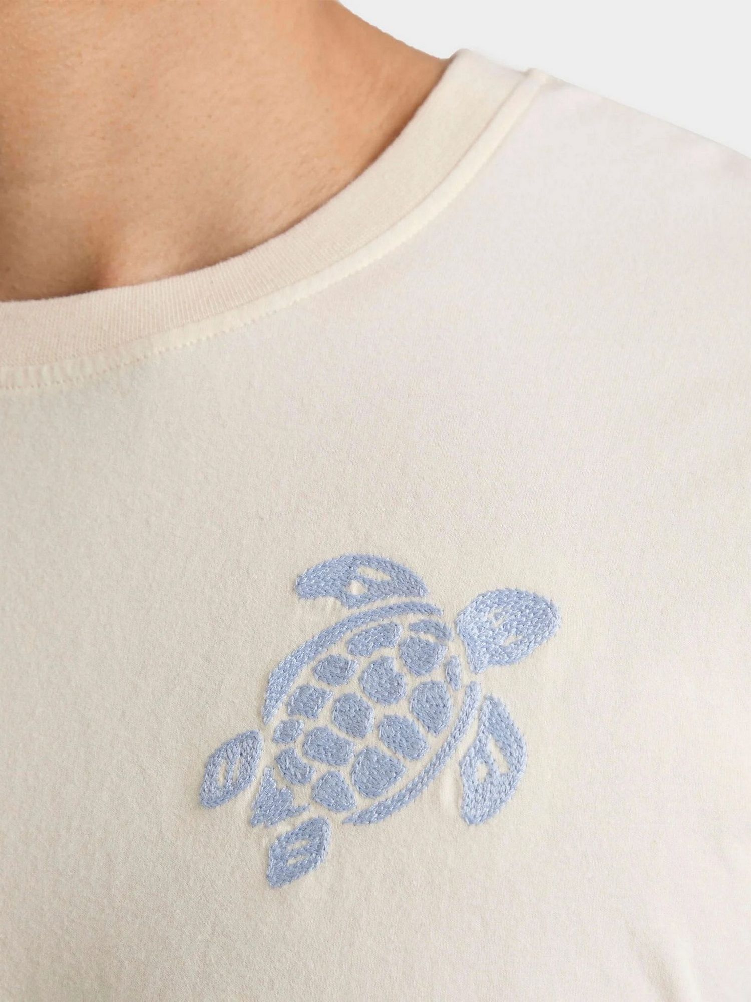T-shirt girocollo in cotone con tartaruga ricamata a punto catenella con filato a contrasto.